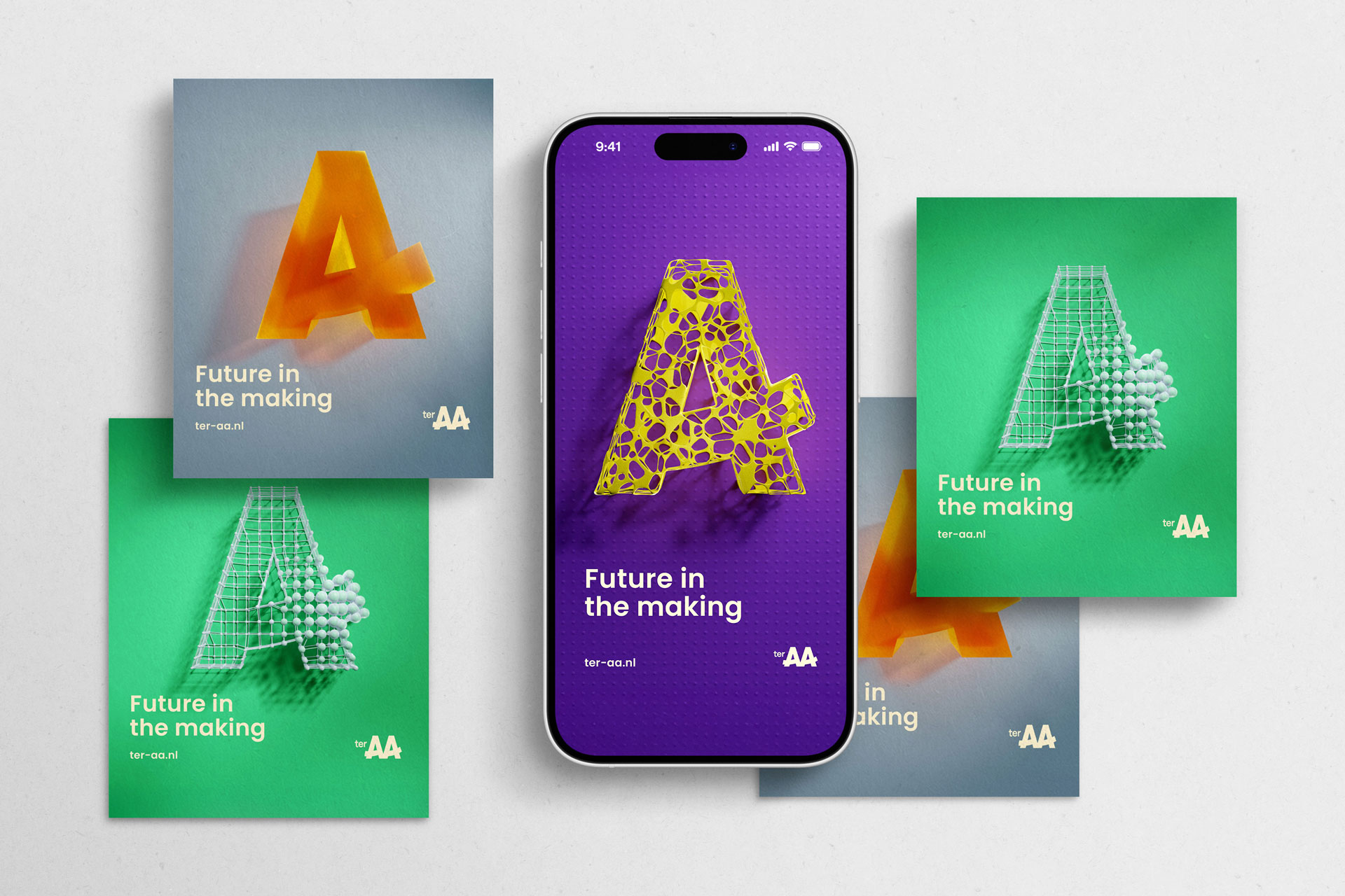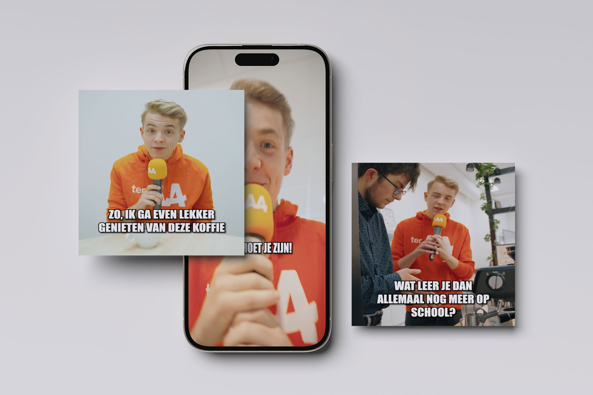 Naast campagnes werkten we het concept door in huisstijluitingen: van visuals en brochures tot signing, beursstands, voorlichting, fotografie en video’s. Met een always-on strategie blijft Ter AA continu zichtbaar op de juiste kanalen, met informatie, kennisdeling én sfeerbeleving. Zodat toekomstige studenten niet alleen lezen over de school, maar ook kunnen voelen of dit de plek is waar zij zichzelf zien rondlopen.